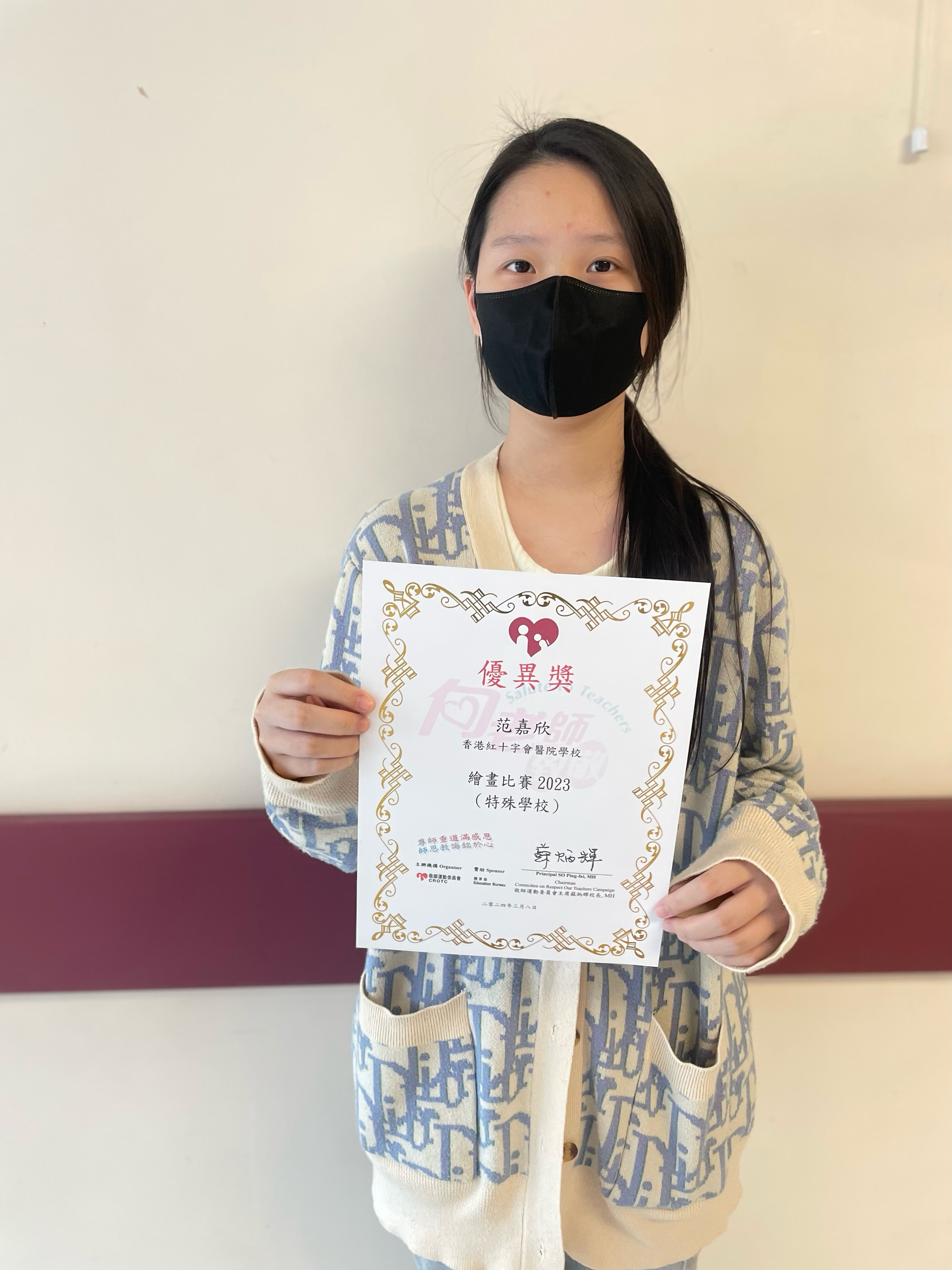 范嘉欣同學獲得「向老師致敬2023繪畫比賽(特殊學校)」優異獎